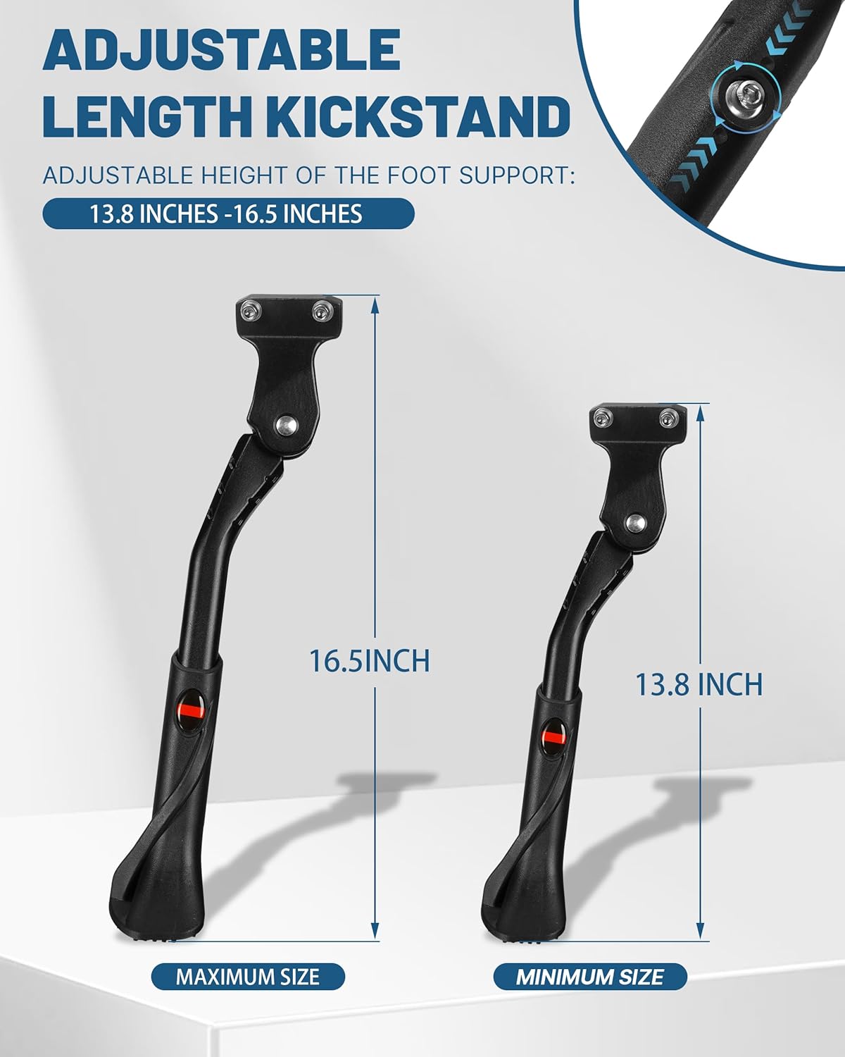 Adjustable Ebike Kickstand for 24-29 Inch Fat Tire Bike, Non-slip Bicycle Kickstand for Adult Bike, Electric Mountain Bike, E-Bike Accessories Replacement Part