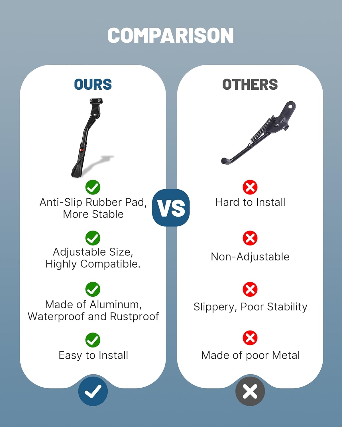 Rugged Aluminum Construction: Crafted from durable, thickened aluminum alloy, the kickstand is built to last, rust-resistant and corrosion-resistant, offering superior strength to reliably support the weight of your electric bike, even after upgrades
