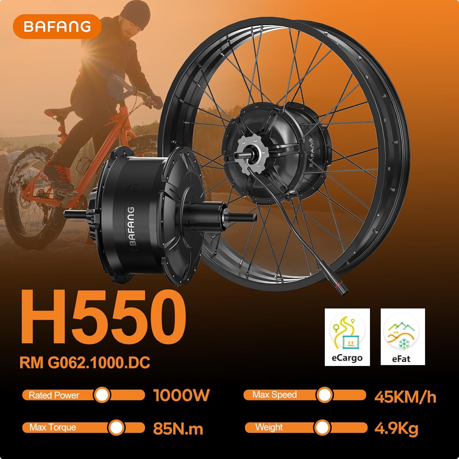BAFANG 48V 1000W Fat Tire EBike Conversion Kit – Dominate Winter Terrain with High-Torque Rear Hub Motor for 20″/26″ Wheels in Deep Snow, Includes Display & Battery(Optional)