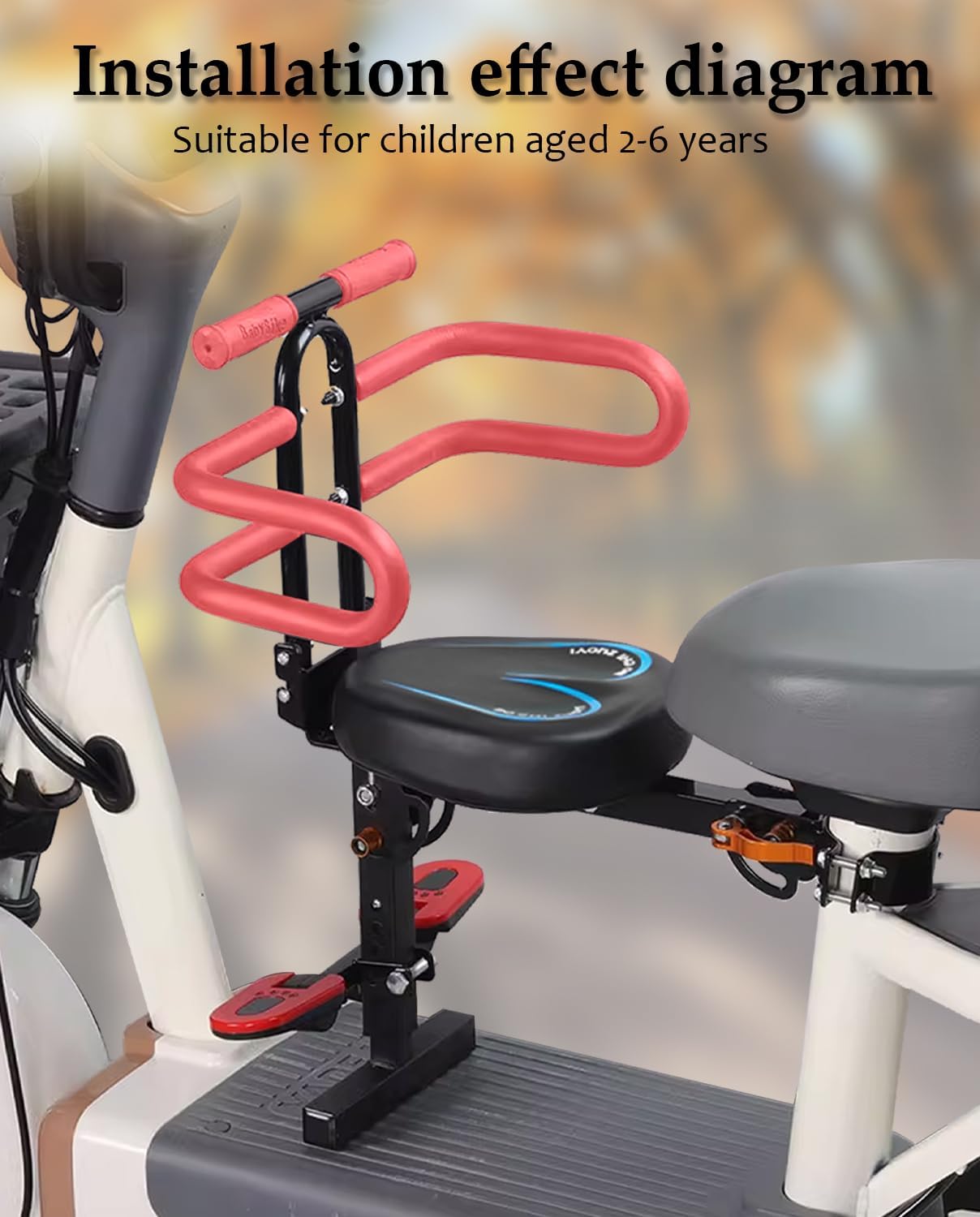 Child Seat for Electric Scooter with seat, Kid Seat Suitable for Electric Bicycle/Hybrid Cruiser Bicycles and City Bicycles, Suitable for Children 2~6 Years