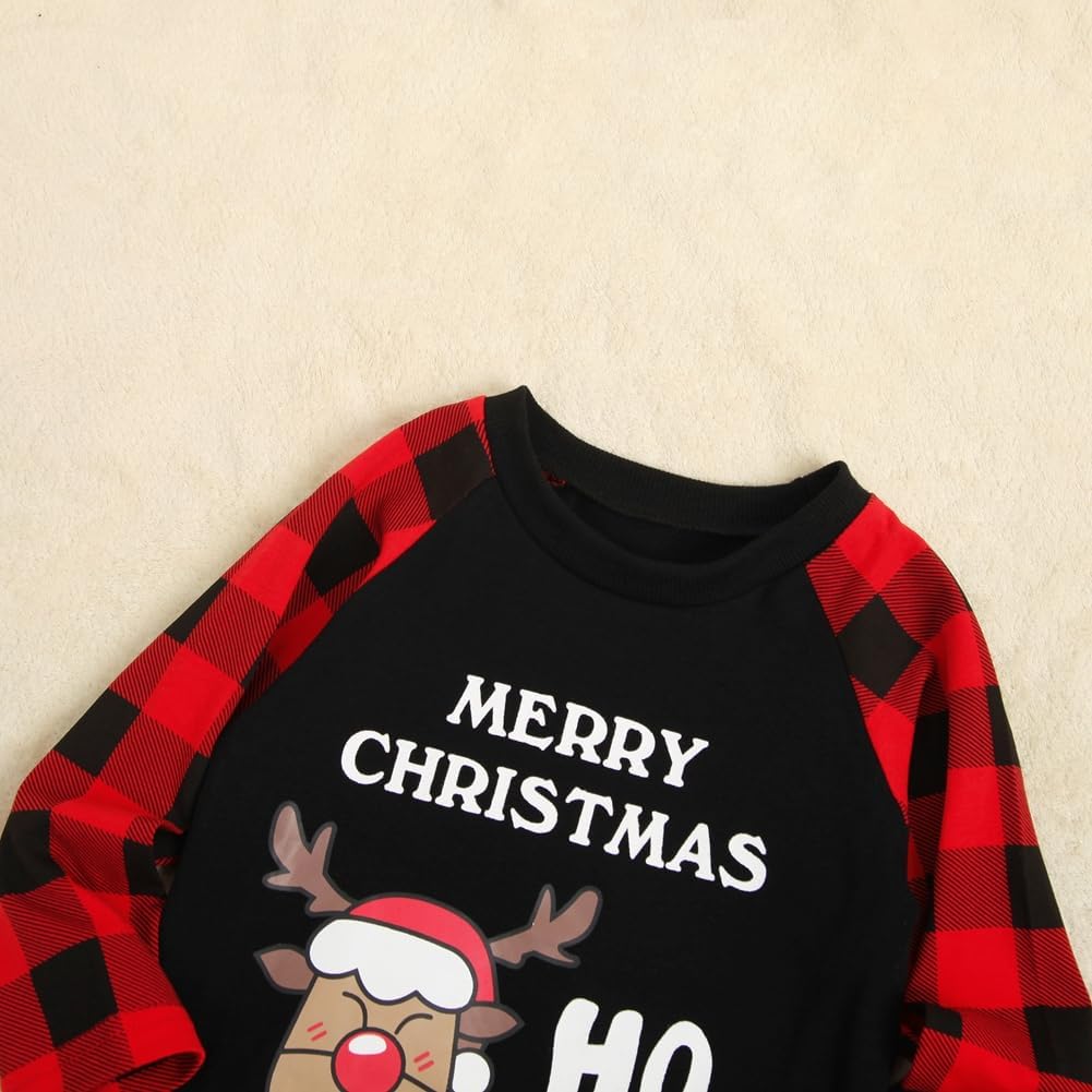 Red Plaid Family Christmas Pajamas outfits 2 piece Family Christmas Pjs set,cute Santa claus and elk cartoon pattern