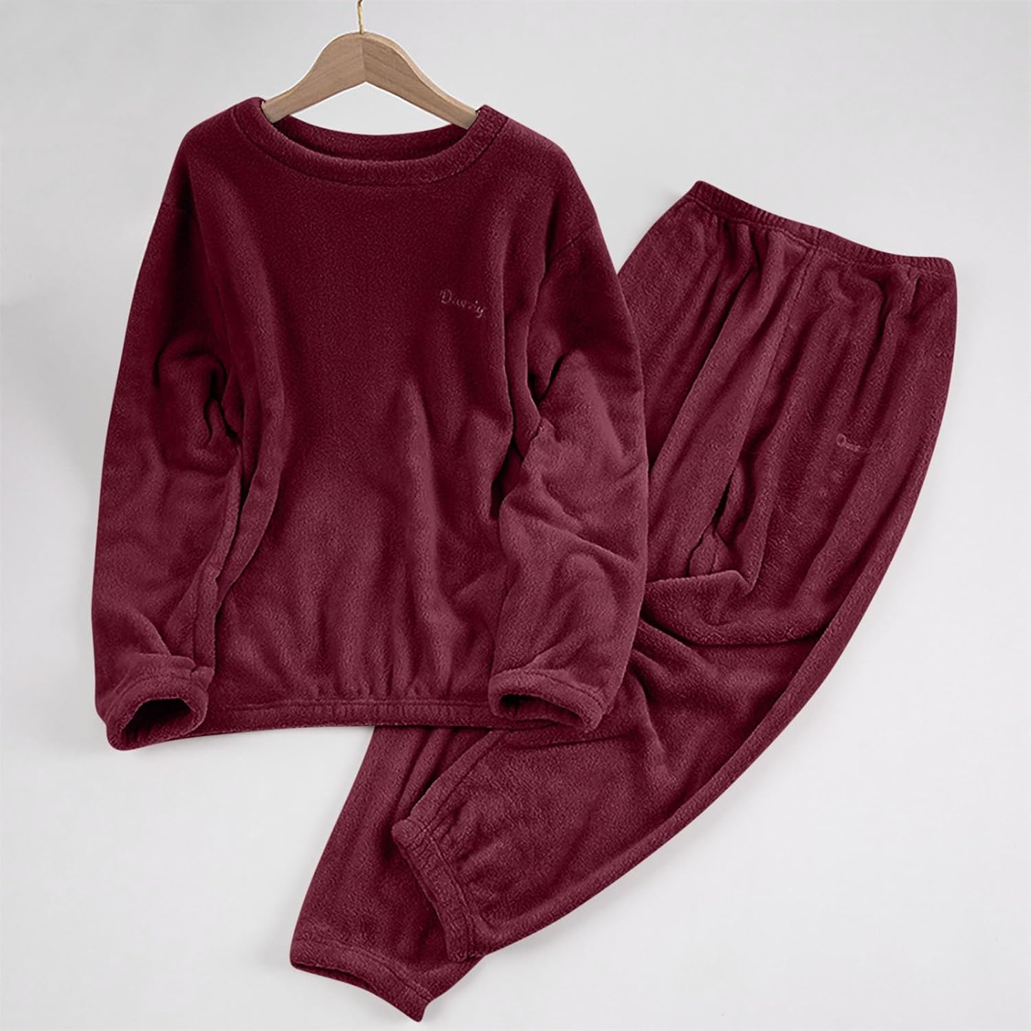 Fleece Pyjamas Women Uk Fluffy Lounge Sets Thick Sleepwear Suit Winter Thermal Jumper Elastic Waist Loungepants 2 Piece Ladies Dressing Gowns Cozy Nightwear Indoor Oodies Outift