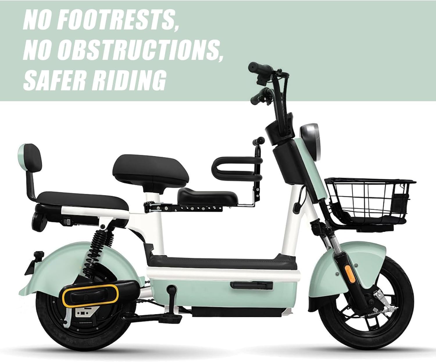 Quick Installation & Portability:Includes all necessary tools for easy setup on electric scooter seat or bike frames. The foldable design allows compact storage when not in use, making it ideal for families on the go