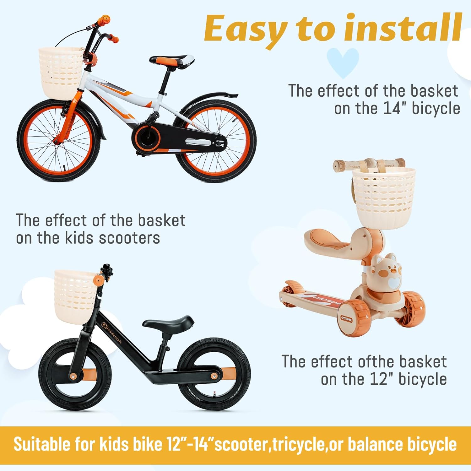 Size & Compatibility: Compact dimensions (check size chart) make this toddler bike basket ideal for kids bike, scooter, tricycle, or small-wheel bikes. Lightweight yet sturdy for everyday use.