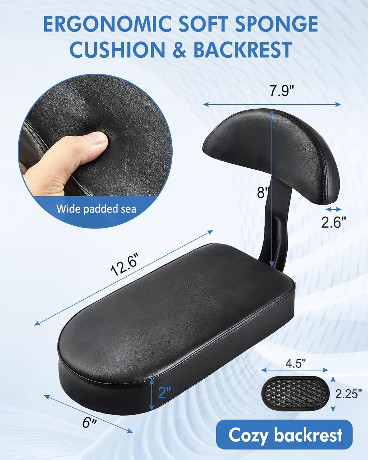 Upgraded Sturdy Materials: ABS metal seat frame, and our kids bike seat cushion wrapped in glossy black leather, sturdy and durable. Elastic memory foam greatly improved comfort bike seat for kids
